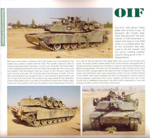 VBegonnen wird wieder mit einigen exquisiten Gesamtansichten rund um das Fahrzeug, hauptsächlich Fahrzeuge von der OIF. Aber auch schöne Fotos aus Deutschland von Abrams im Schnee, teilweis mit Mine Plough werden gezeigt.