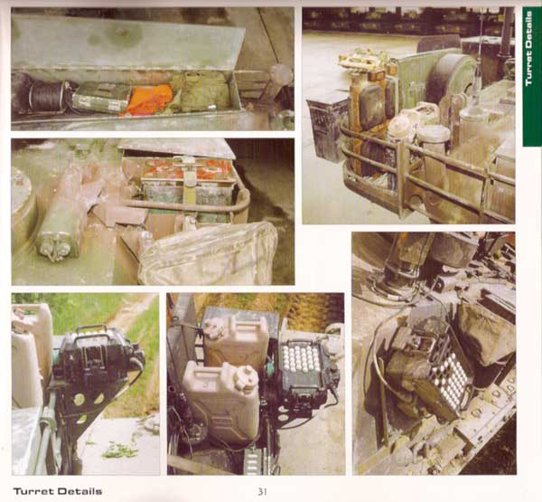 Gezeigt werden dazu Detailansichten vom Turm aus allen Blickwinkeln, die Luken, Waffenanlage, APU, Staukörbe, MG Lafette, Fahrerplatz, Motorlüfter, Beeuchtungsanlage, Tankstutzen, seitenschürzen, Kette, Laufrollen, Antriebsräder, Motor und Motorraum, Minenpflug, usw.