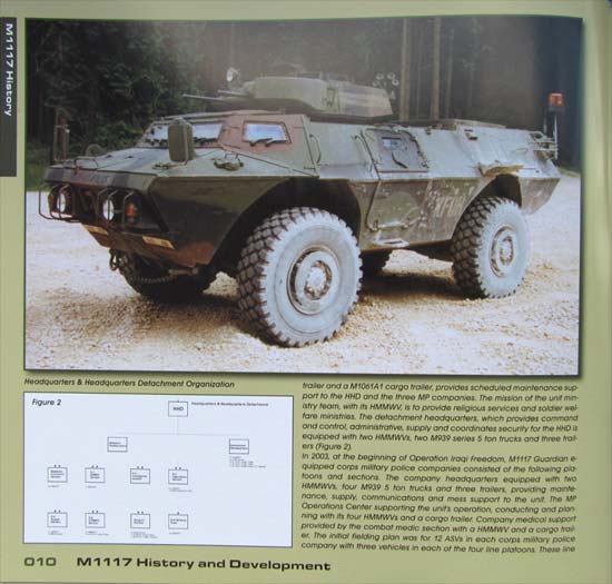Das Heft beginnt auf den ersten 45 Seiten mit dem M1117 und ein paar schönen gesamtaufnahmen und knapp 10 Seiten einleitendem text zu Geschichte, technik, Einsatz und Gliederung des M1117.