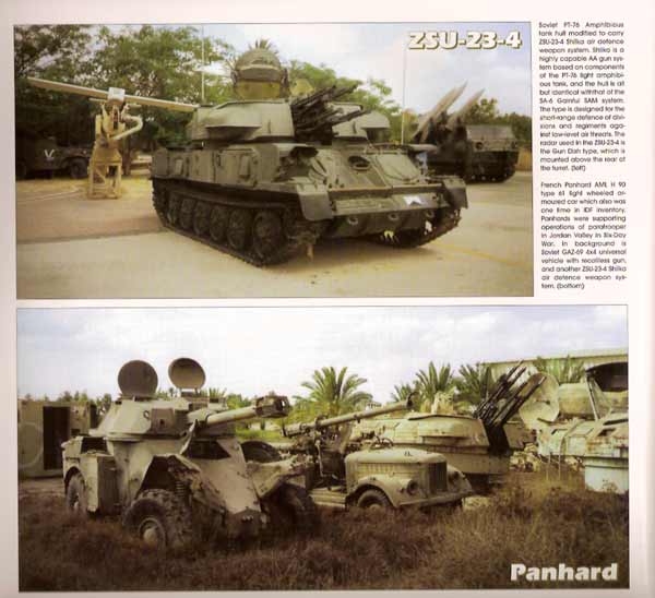 Gezeigt werden: Merkava III, M60 Magach, M60 Blazer, M48 A2/105 ISR, Achzarit, Zelda, Ben Gurion, Centurion Mk.5, M10 Achilles, Shermans, Hotchkiss H35 und 38, M5 Halbkette, Marmon Harrington, Sherman Kilshon, M163 Vulcan, M727 SP Hawk, TCM-20 AA, HS-404, M36 Keres, GMC CCKW 353/352, M36 A2, MIM-23 HAWK Launcher, HAWK AD, ZSU-57-2, BRDM-2, ZSU-23-4, Bofors 40 L70, BTR-40, usw.