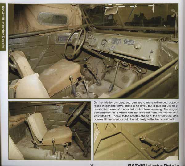 Es folgen 11 Seiten vom GAZ-46 MAV mit ein paar Gesamtansichten und Details der Hauptmerkmale wie Reifen, Beleuchtung, Wanne, Motor, Innenraum, usw.