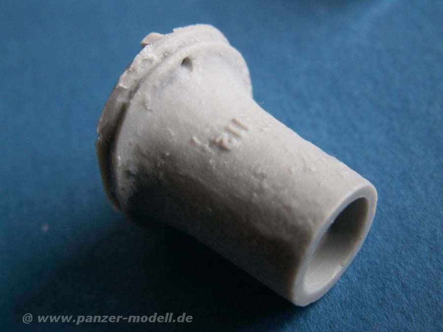 Die Qualität der Resinteile ist sehr gut - die Struktur der Topfblende toll getroffen und sogar mit Gussnummern. Die Mündungsbremse muss etwas versäubert werden, sollte aber kein problem darstellen.