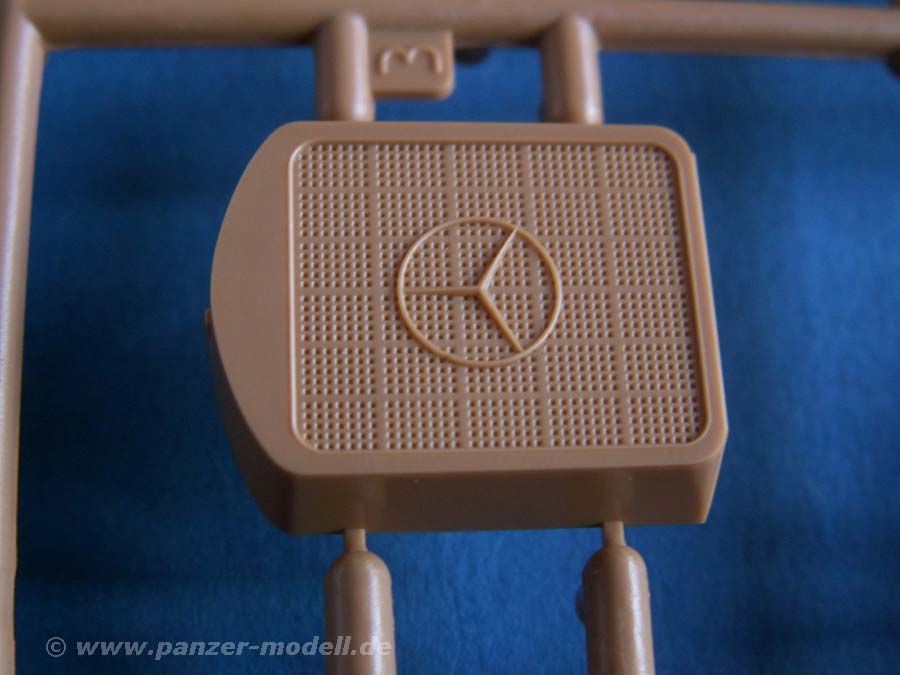 Das Fahrerhaus ist mehrteilig und macht einen schönen Eindruck. Desweiteren der Kühlergrill mit Mercedesstern und sogar ein kompletter Motor.