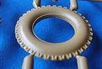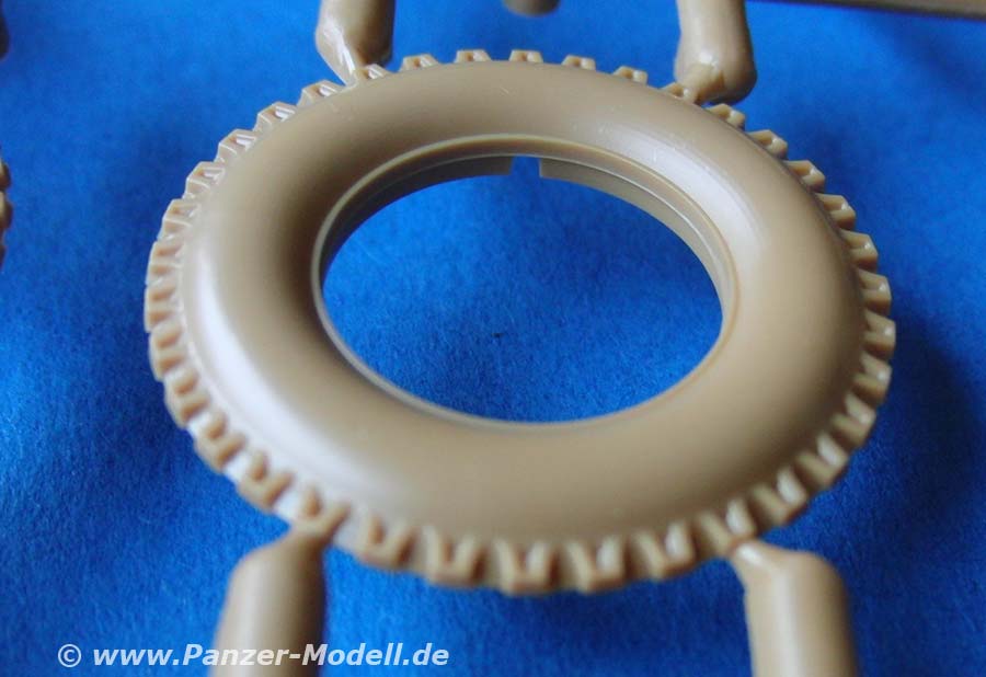 Ebenfalls immer noch sind die Reifen die Achillesferse des Bausatzes, denn die Machart ist eher ein nachkriegsreifen und die Details sind eher mäßig - eun Glück, dass es hier Ersatz von Plus Models und Schatton gibt.