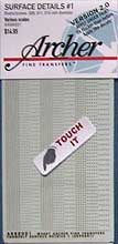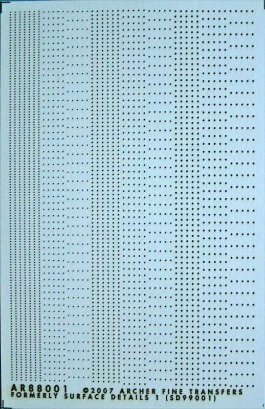 Diese Reihe "Surface Details" von Archer ist mal was ganz anderes, denn hierbei handelt es sich nicht um Aufreibedecals, sondern um Nassschiebedecals. Wo ist da der Witz mag man fragen, aber der Clou entpuppt sich erst bei genauerem Hinsehen, bzw. beim anfassen. Denn dies sind echte 3D Decals, die deutliche Oberflächenerhöhung haben. Das Set 88001 beinhaltet Nieten und Schraubenköpfe.