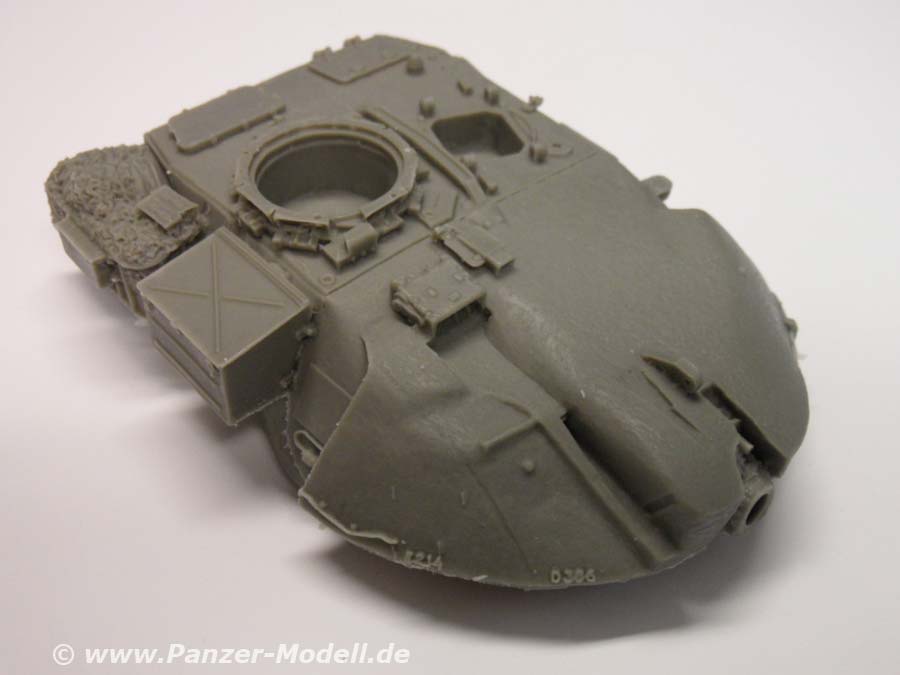 Geliefert werden sehr gut verpackt eine komplette Oberwanne, der Turm und div Anbau- und Kleinteile. Alles sehr gut in Resin gegossen. Grade die Kanone weiß hier zu überzeugen! Die Wärmeschutzhülle wurde perfekt umgesetzt!