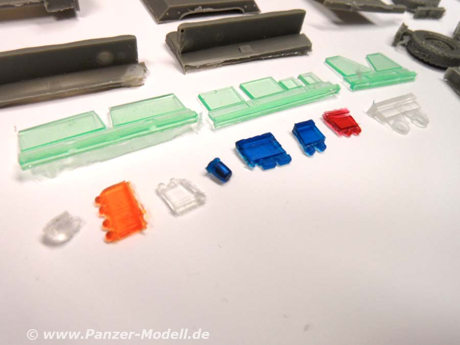 Accurate Armour hat hier ganze Arbeit geleistet. Der Bausatz präsentiert sich als wahrer Multimediabausatz. Neben den Resinteilen finden sich eine große Ätzplatine, Drähte, Folie und Decals im Bausatz. Alle Beleuchtungsteile sind schon passend eingefärbt!