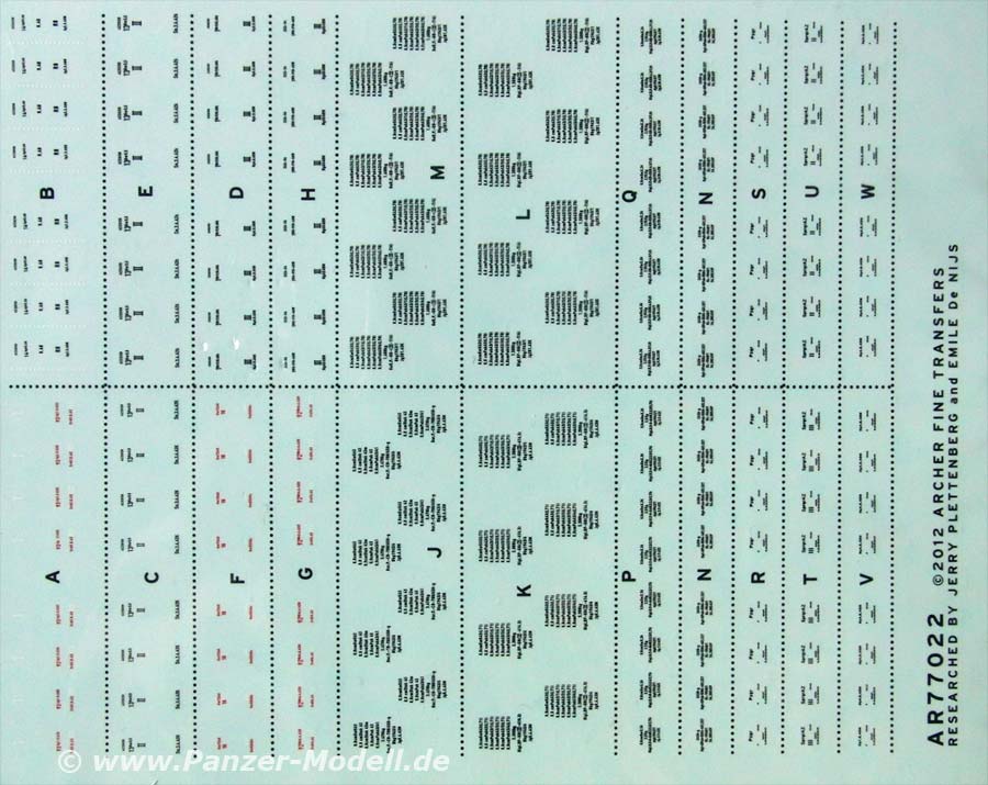 Der Druck der Decals ist in schwarz und rot und in bemerkenswert kleiner, feiner Schrift, die bei entsprechend guten Augen auch lesen kann.