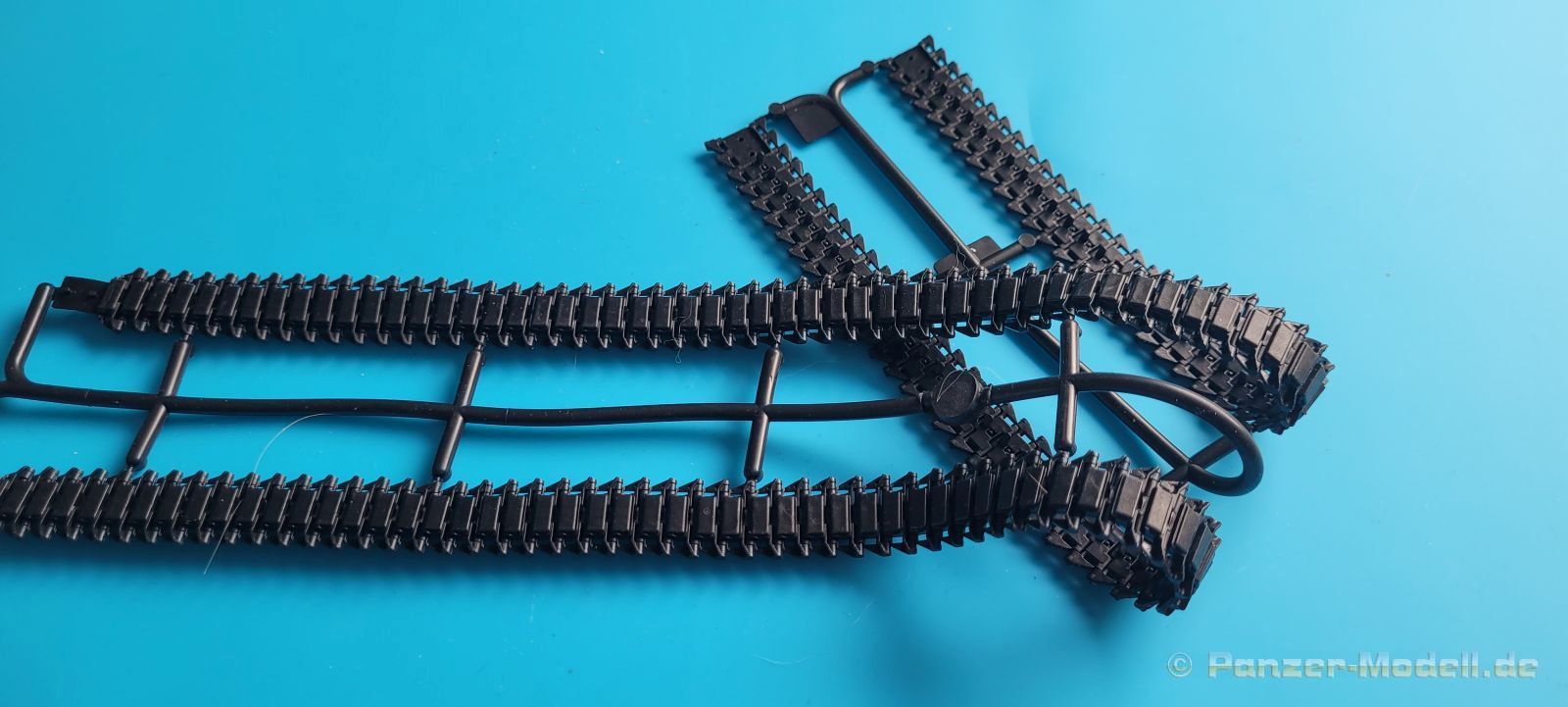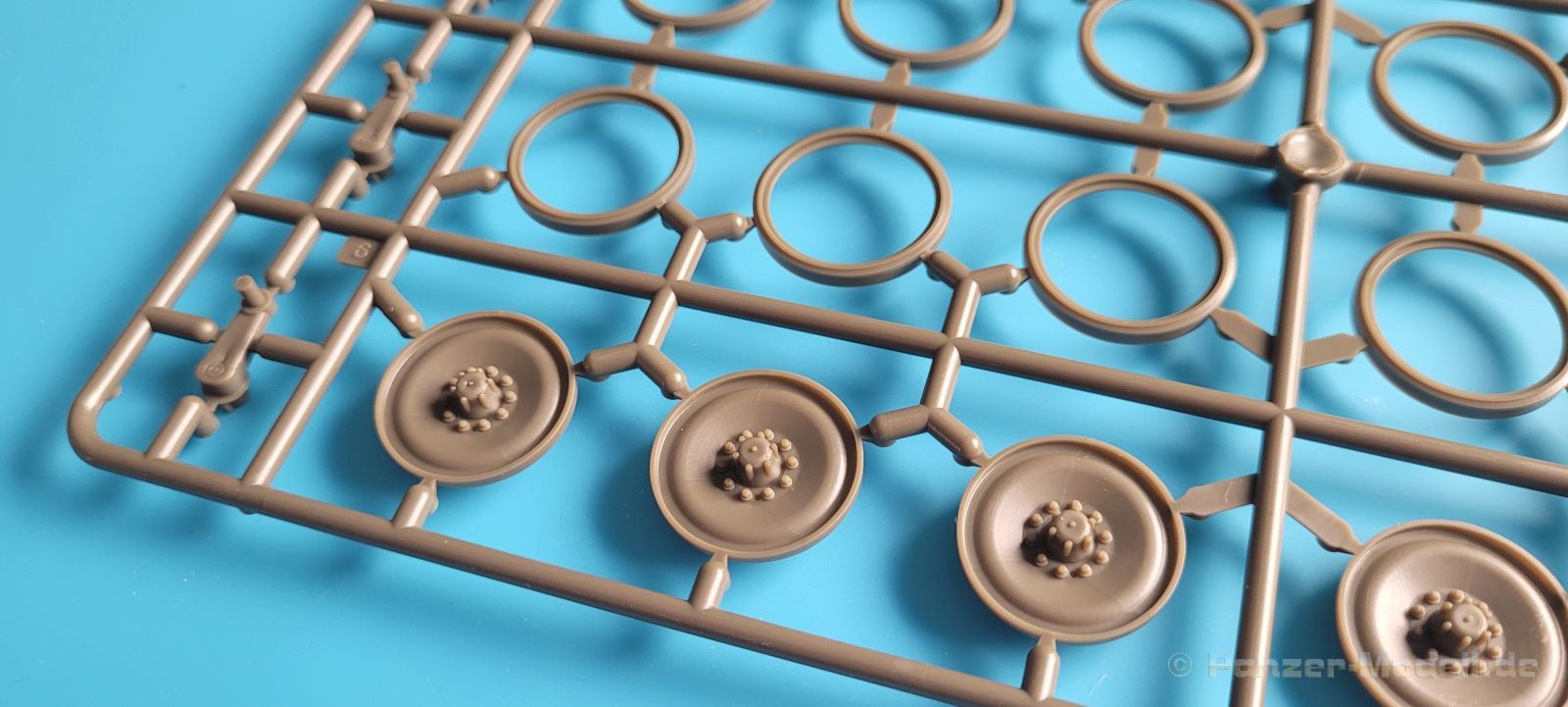 Die Laufrollen bestehen aus mehreren Teilen, wobei die Gummibandagen separat ausgeführt sind, dies verleiht nicht nur einen guten Tiefeneffekt, sondern erleichtert auch die Bemalung.