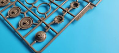 Die Laufrollen, Leit- und Treibräder sind auch wunderbar graviert wiedergegeben. Diese werden mit Polycaps versehen, und können somit für die Bemalung wieder abgenommen werden.