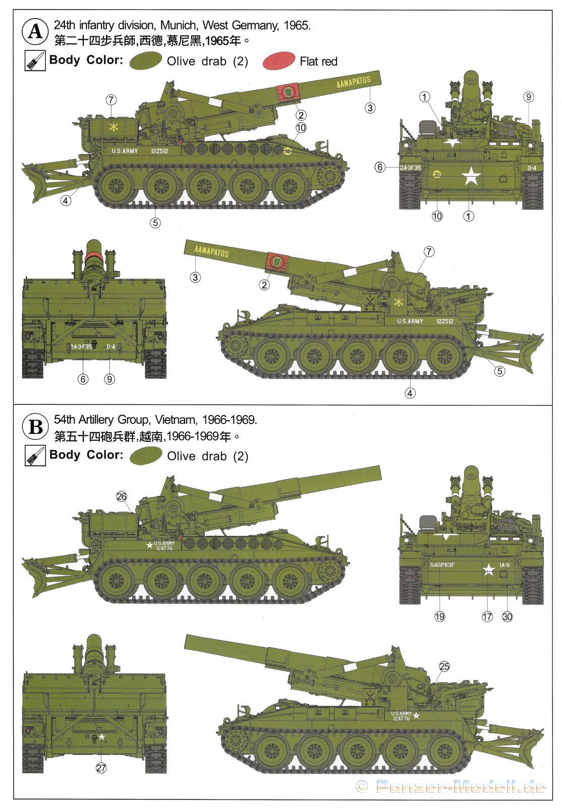 Als Farbhersteller sind folgende Firmen angegeben: Gunze (CSI Creos), Humbrol, Vallejo und Lifecolor.