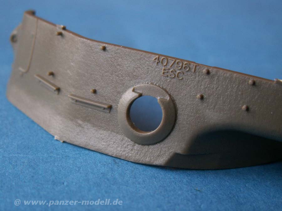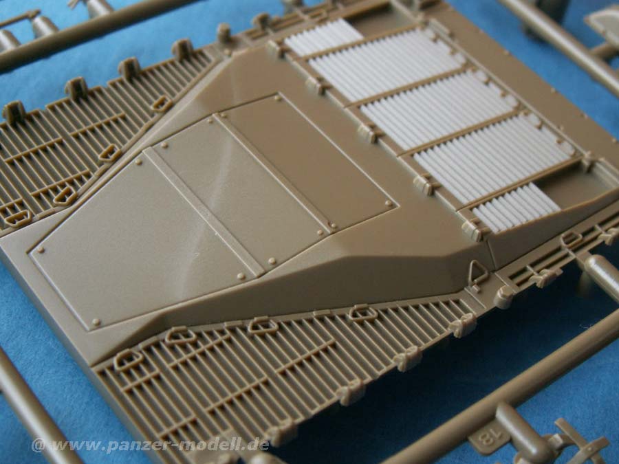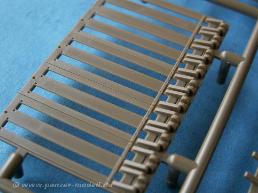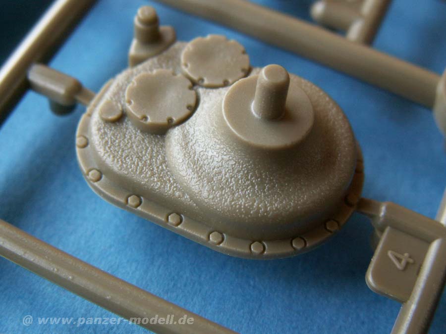 Die Qualität der Spritzgusteile ist hervorragend - Oberflächenstrukturen, wie etwa die Seitenvorgelege oder die Kanonenblende sind mit exzellenter Gussstruktur versehen udn auch Schweißnähte sind exzellent dargestellt.