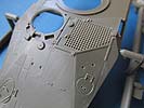 Die Oberwanne kommt ebenfalls in einem Stück daher und macht soweit einen guten Eindruck mit feinen details, wie entwa den Antirutsch Pads, Lukendeckel, usw.. Die Kühlluftöffnung an der Seite ist offen und wird durch ein Plastikgräting vervollständigt - da aber kein innenraum vorhanden ist, schaut man dort ins Leere, bzw ggf. bis zur Figur in der Fahrerluke, wenn man nicht zumindet eine Trennwand selber einbaut. Schade - das hätte man mit diesem Update sicher ohne weiteres ergänzen können. Das obere Lüftergitter wird mit einem PE Gitter aus dem Bausatz verfeinert und sieht dann richtig gut aus. Für die Abdeckung des Auspuffrohres liegt auch ein entsprechendes Lochblech aus PE bei, das mehrfach geknickt dann eine entsprechende abdeckung ergibt. Im alten Bausatz war dies recht dick und störrisch - die vorliegende PE Platine sieht da um einiges gefälliger aus.