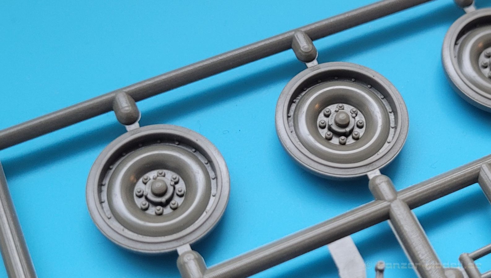 Die Spritzlinge für die Laufrollen stammen tatsächlich noch vom M548 von AFV-Club, dieser ist aus dem Jahr 1992. Diese befinden sich an einem Spritzling, an dem noch einige Teile des M548 vorhanden sind. Futter für die Grabbelkiste.