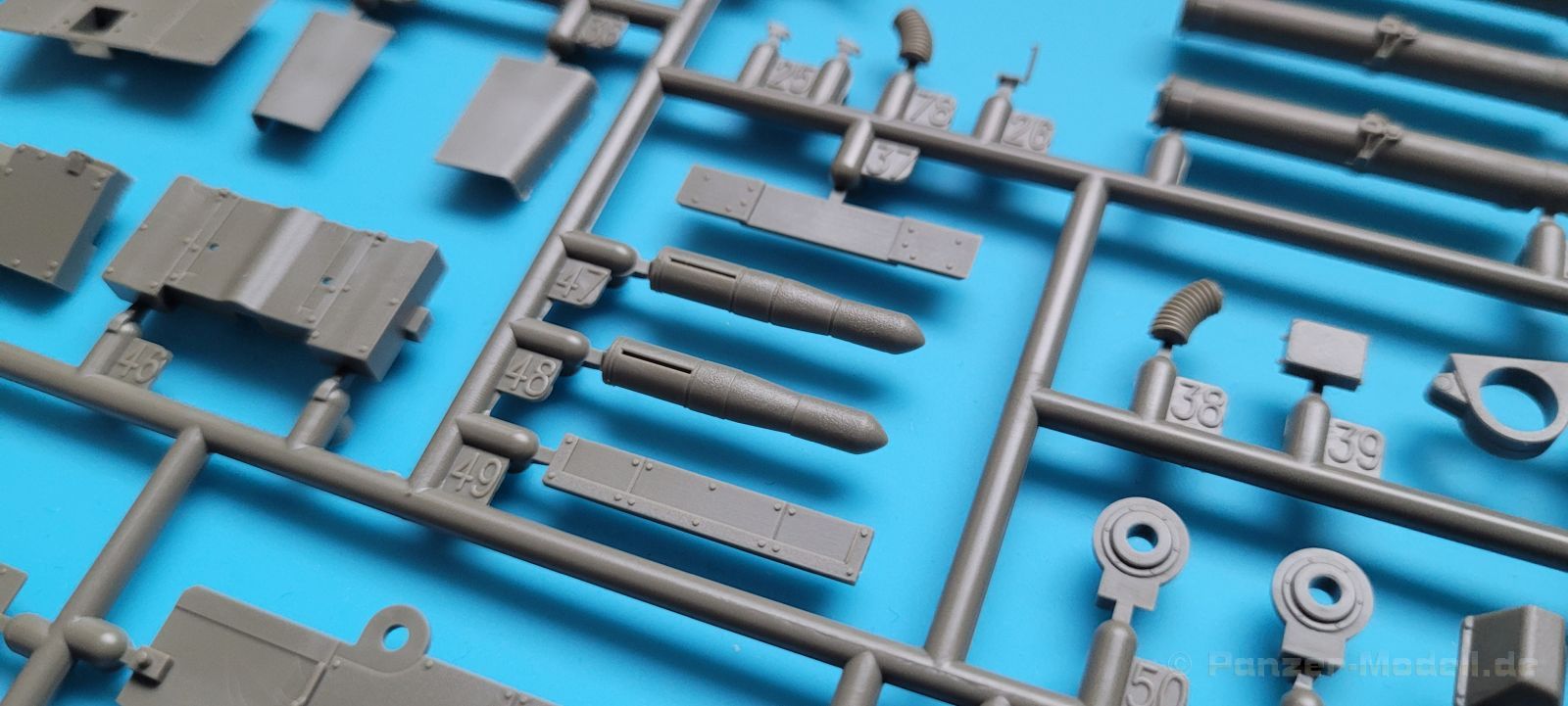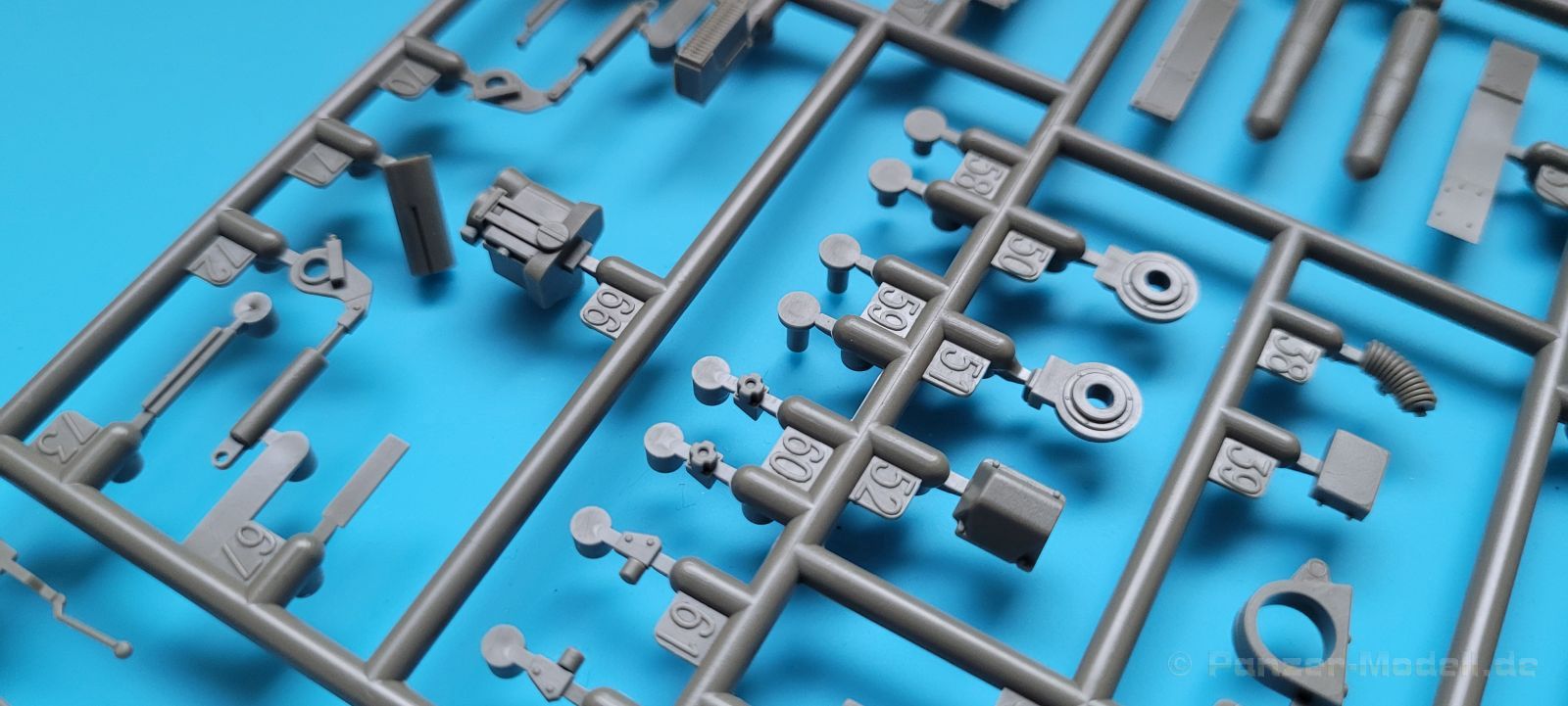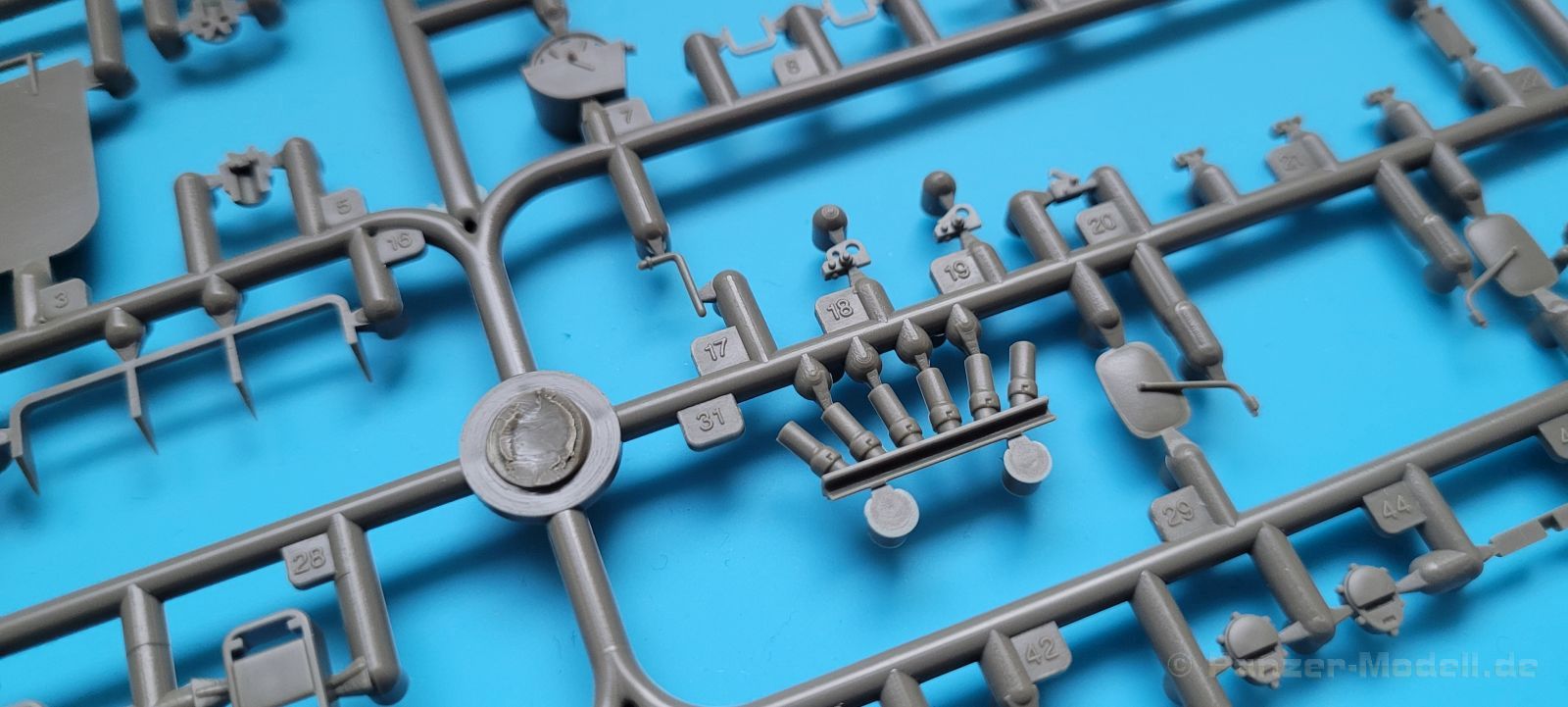 Alle Bauteile machen einen durchweg guten Eindruck, sind frei von Fischhäuten und gut bis sehr gut detailliert. Auswerfermarken sind nur an später nicht mehr sichtbaren Stellen vorhanden.
