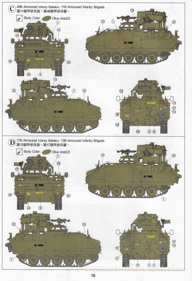 Die Farbangaben beziehen sich auf GSI Creos (Gunze), Humbrol, Vallejo und Lifecolor.