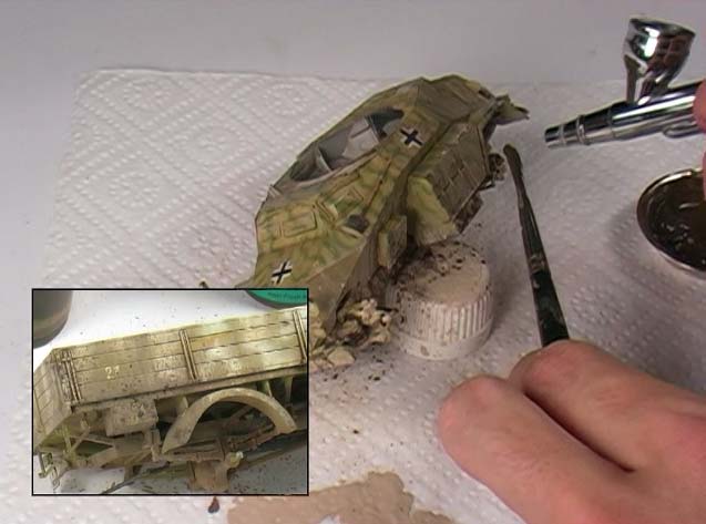 Doch zurück zum Thema: Hauptthema dieser DVD ist das Altern eines fahrzeugs, in diesem Fall das Sd.Kfz.222 in 1:35. Es ist zuvor bemalt und mit Decals versehen worden.