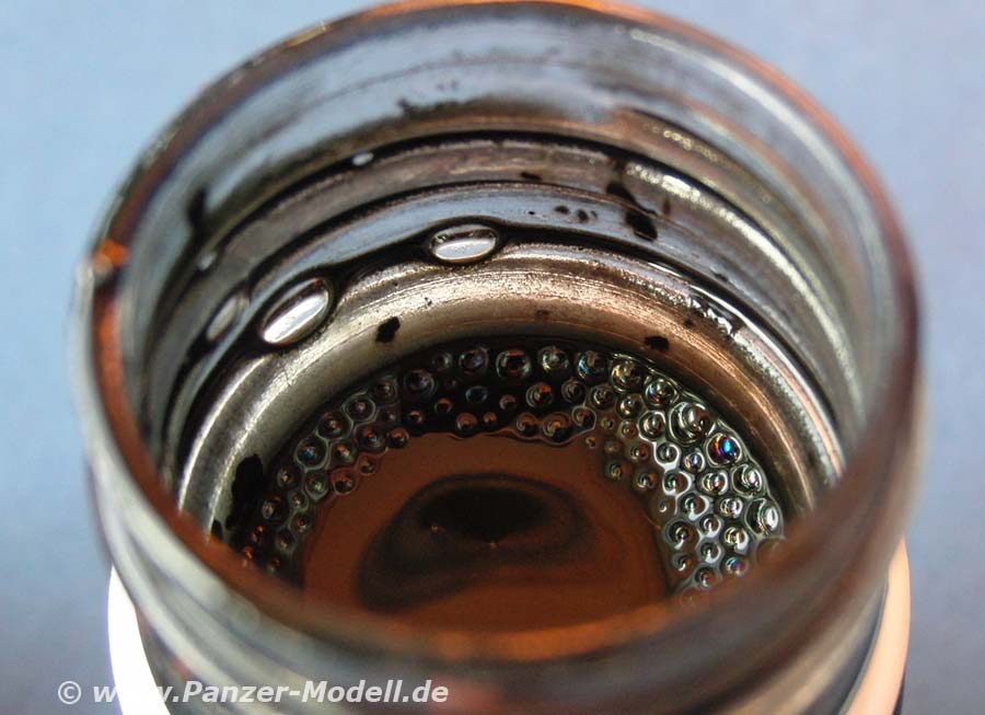 Diese verdünnten Farblösung sind auf Emaillebasis, d.h. wer seine Modelle mit Acrylfarben bemalt kann hier hemmungslos mit herumspielen, da die Acrylfarben nicht angegriffen werden. Aber auch Farben auf Emaillebasis können hiermit bearbeitet werden, wenn man nur vorsichtig genug damit umgeht.