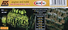 Unter der Nummer AK-087 gibt es nun ein Fünfer-Weathering Set namens Engines and Metal Weathering Set.
