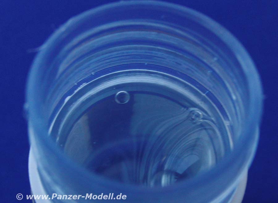 In dem vorliegenden 35ml Plastiktöpfchen findet sich eine klare Flüssigkeit.