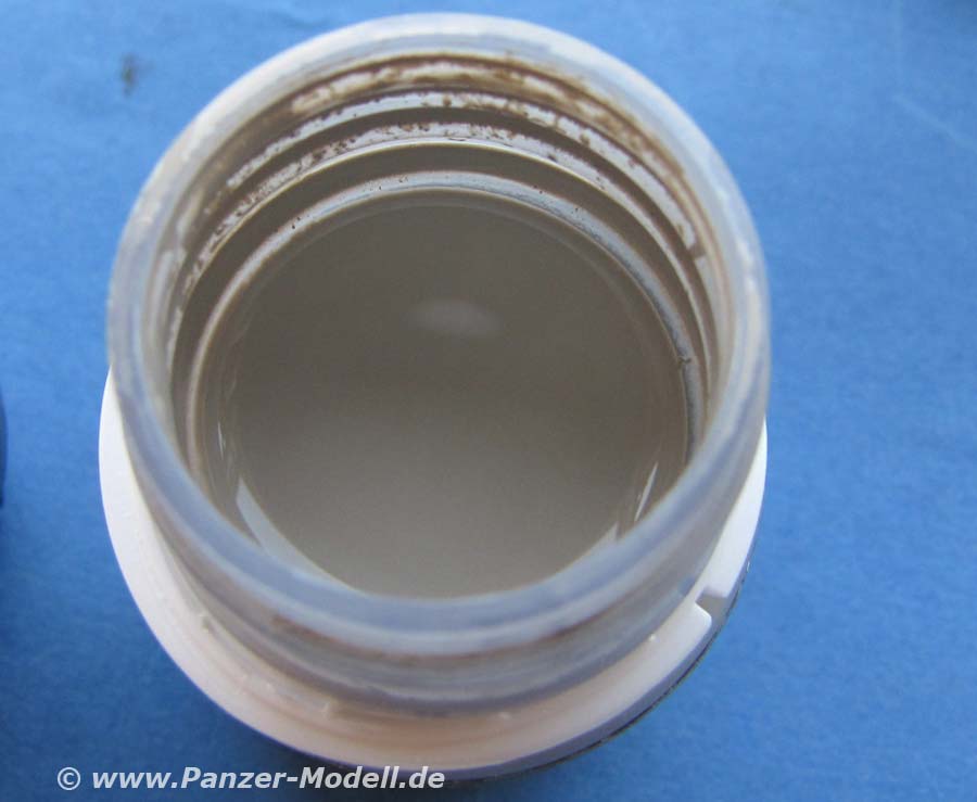 Im 35ml Plastikdöschen liefert AK uns hier eine fertig angerührte Farbbrühe auf Emaillebasis - d.h. auf Fahrzeugen mit Acrylfarbenlackierung ganz ohne Probleme einsetzbar.