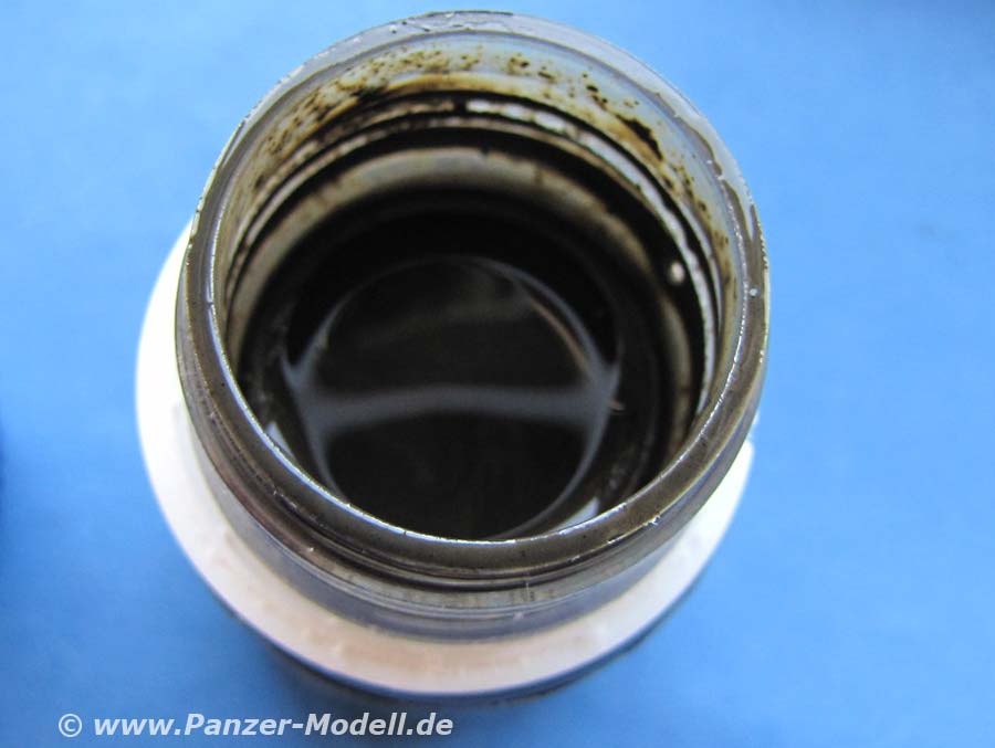Im 35ml Plastikdöschen liefert AK uns hier eine fertig angerührte Farbbrühe auf Emaillebasis - d.h. auf Fahrzeugen mit Acrylfarbenlackierung ganz ohne Probleme einsetzbar.