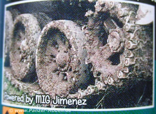 Der Effekt dieser Lösung ist, dass man zum einen die Lösung direkt aufs Fahrzeug auftragen kann, wo sie schlammig auftrocknet oder damit verschiedene Pasten einfärben kann um dickere Schlammbrocken am Modell darzustellen.