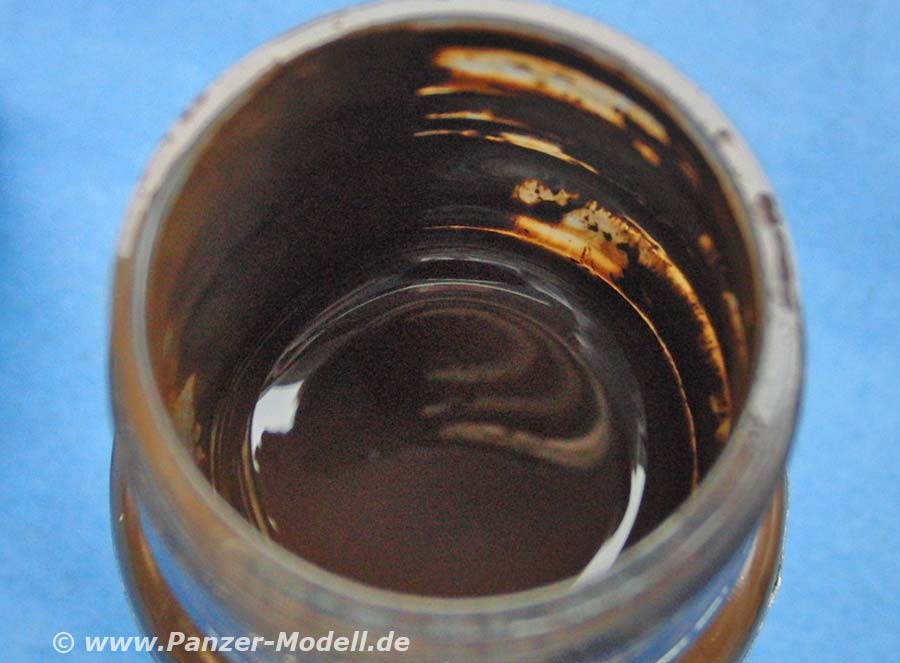 Diese sunkelbraune, kräftige Farblösung ist ziemlich deckend und dafür geeignet/gedacht, Sclamm und Schlammspritzer am Fahrzeug darstellen zu können.