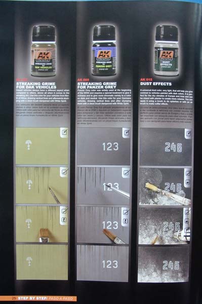 Der Hauptclou dieses Katalogs sind aber die Kurzanleitungen mit bebilderten Schritt für Schritt Anleitungen für verschiedene Altersffekte, wie Streaking Effects, Schlammspritzer, Rost, Schmutz, Regenlaufspuren, usw.