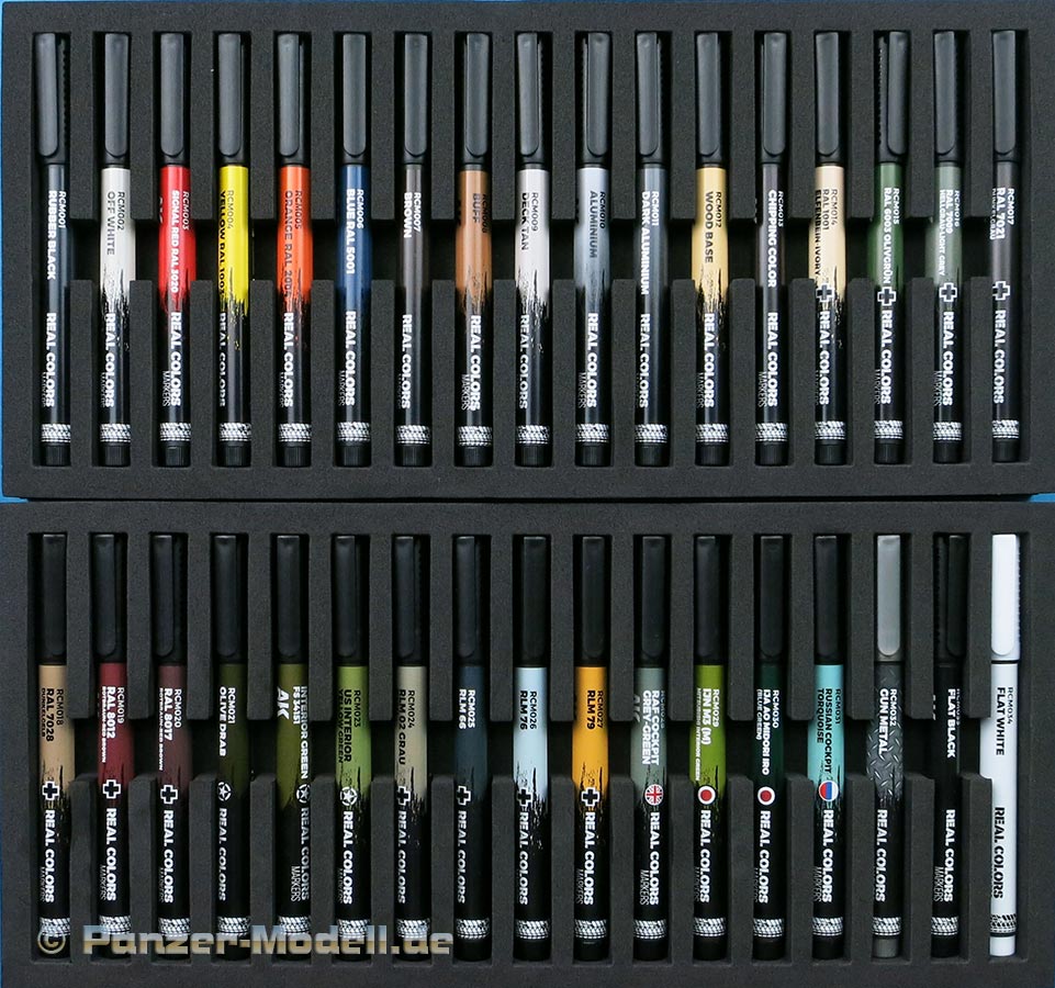 Mit dem Artikel RCM150 erhält man von AK-interactive nun die schöne und große Real Colors Markers Deluxe Case mit 34 von den brandneuen Acryl Stiften.