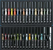 Ein sehr schönes Set in einer schönen Box, wobei es etwas umständlich ist an die unterste Ebene zu kommen. Und eventuell braucht man nicht die komplette Range zum Anfang, sondern tastet sich erstmal mit Einzelstiften under 3er Sets an die für sich persönlich wichtigsten Bereiche heran.