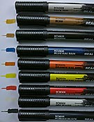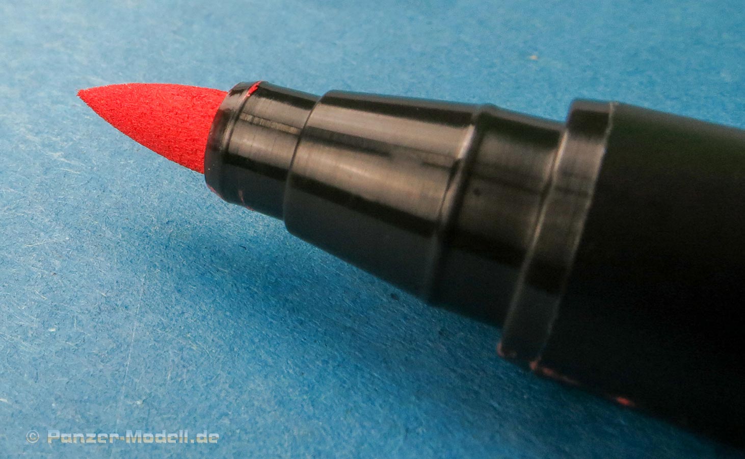 Zugegeben, die Spitze könnte zum ein gern noch dünner sein und auch etwas härter, denn zwar kann man sehr feine Striche ziehen und damit auch sehr dünne Bauteile bemalen, aber etwas mehr Druck und die Spitze verbreitert sich entsprechend. Man braucht hier dann eine ruhige Hand - aber braucht man die bei feinen Details nicht eh?