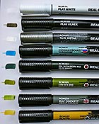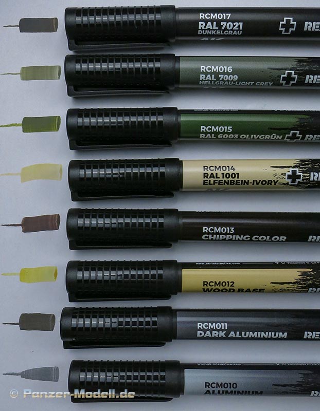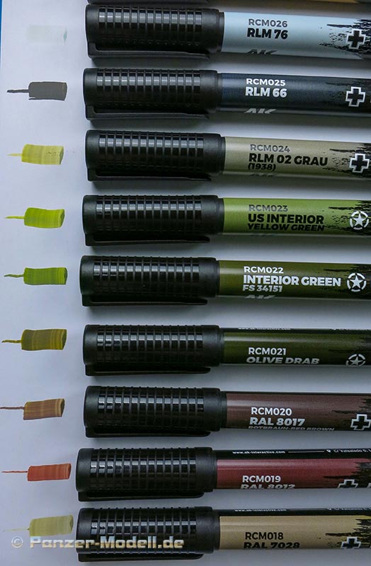 Immer wenn man denkt man könne gerade im bereich der Farben nicht mehr überrascht werden, kommt doch nochmal jemand mit einer Innovation um die Ecke - in diesem Fall kommt AK mit einer Art "Filz"stift um die Ecke. Nun sind Stifte im M0dellbaubereich nicht ganz neu, aber hier haben wir Stifte, die fertig vorgemischte M0dellbau Acrylfarbe bereithält, die über eine scharf geformte, weiche Spitze vom M0dellbauer recht komfortabel auf das M0dell gebracht werden kann.