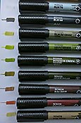Davon ab, sind die Stifte aber wirklich grandios. Sie liegen gut in der Hand, die Farben brauchen nicht geschüttelt werden (wer verzweifelt auf das Klackern einer Kugel im Innern wartet), die Pigmentierung ist sehr gut und fein und auch die Deckkraft ist gut. Bei den hellen Farben wie ocker oder weiß, muss man allerdings sicher 2 Schichten Auftragen.