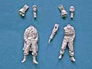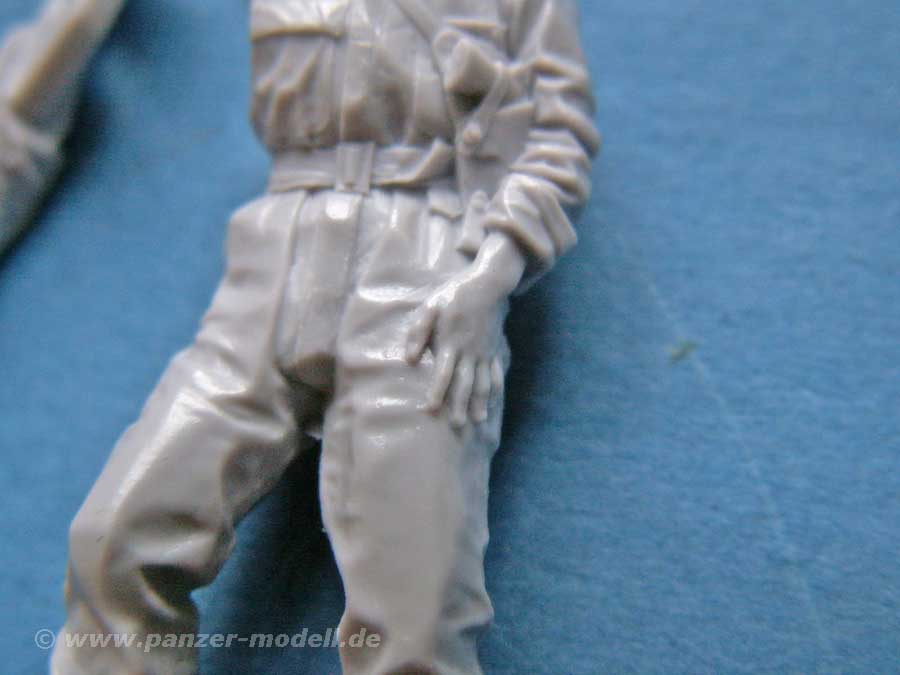 Beide Figuren bestehen aus angenehm wenigen und sehr gut geossenen Teilen aus Resin. Der Körper ist dabei nahezu komplett gegossen - bei einer Figur muss nur noch der Kopf, bei der anderen der Kopf und ein Arm angeklebt werden. Dies ist angenehm und modellbaufreundlich. Natürlich gibt es für beide Figuren wieder die Auswahl von jeweils zwei verschiedenen Köpfen. Diese sind entweder mit Stahlhelm oder Panzerkappe bzw. Feldmütze ausgestattet.