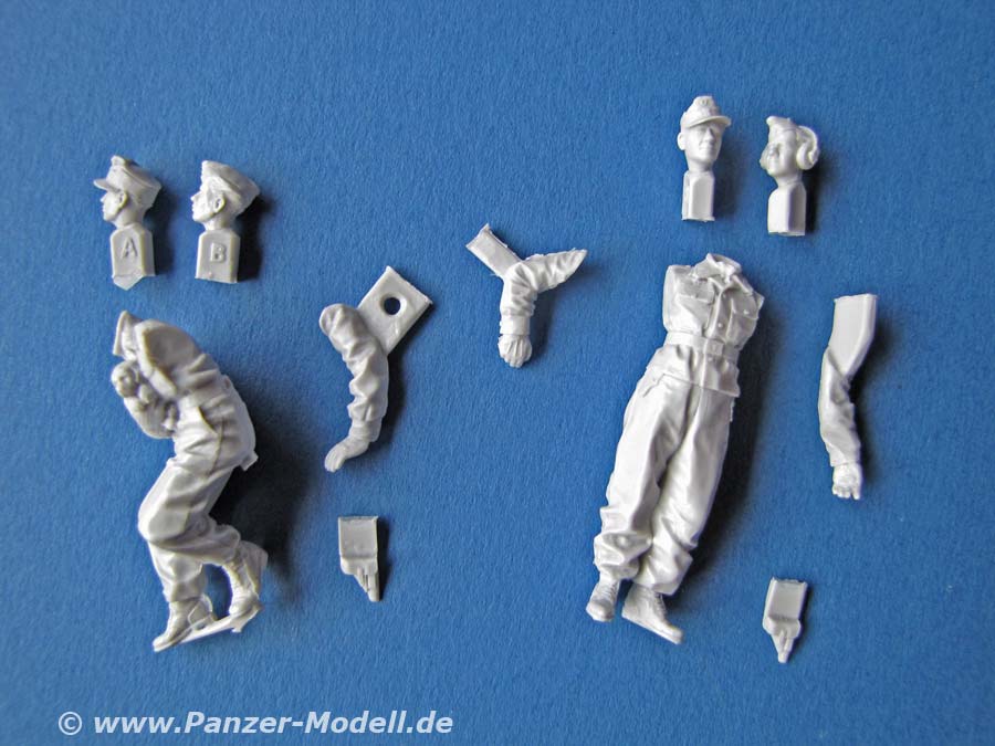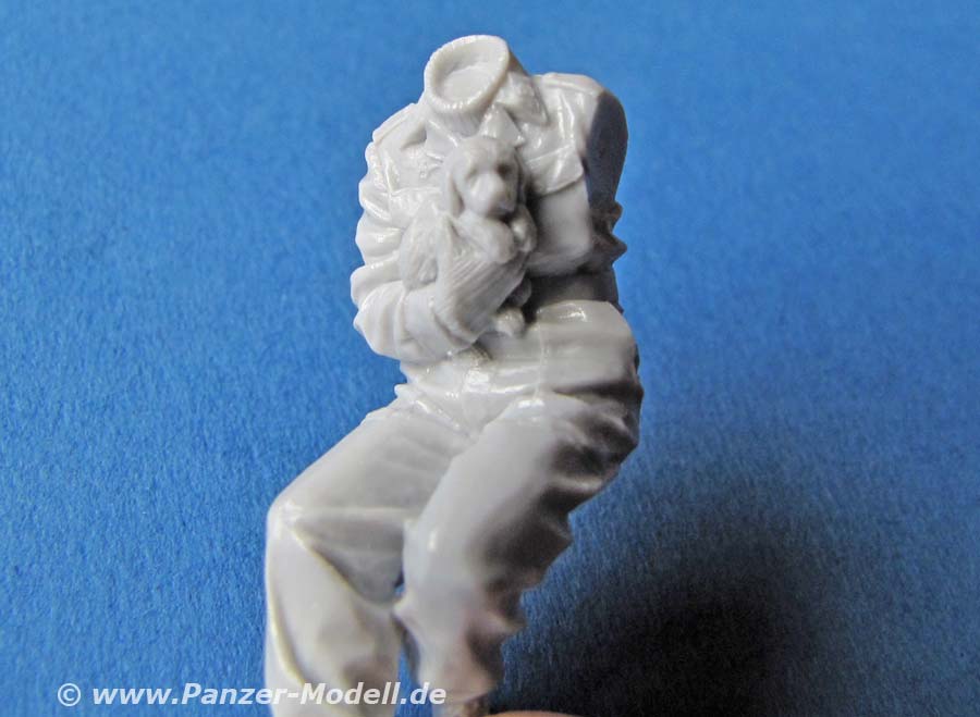 Erfreulicherweise hat man diesesmal angenehm andere Posen - eine sitzende Figur mit Hund im Arm und eine stehende Figur mit Armhaltung für eine Kommandantenkuppel - so kann man einen entsprechenden Panzer schön mit diesen Figuren aufpeppen.