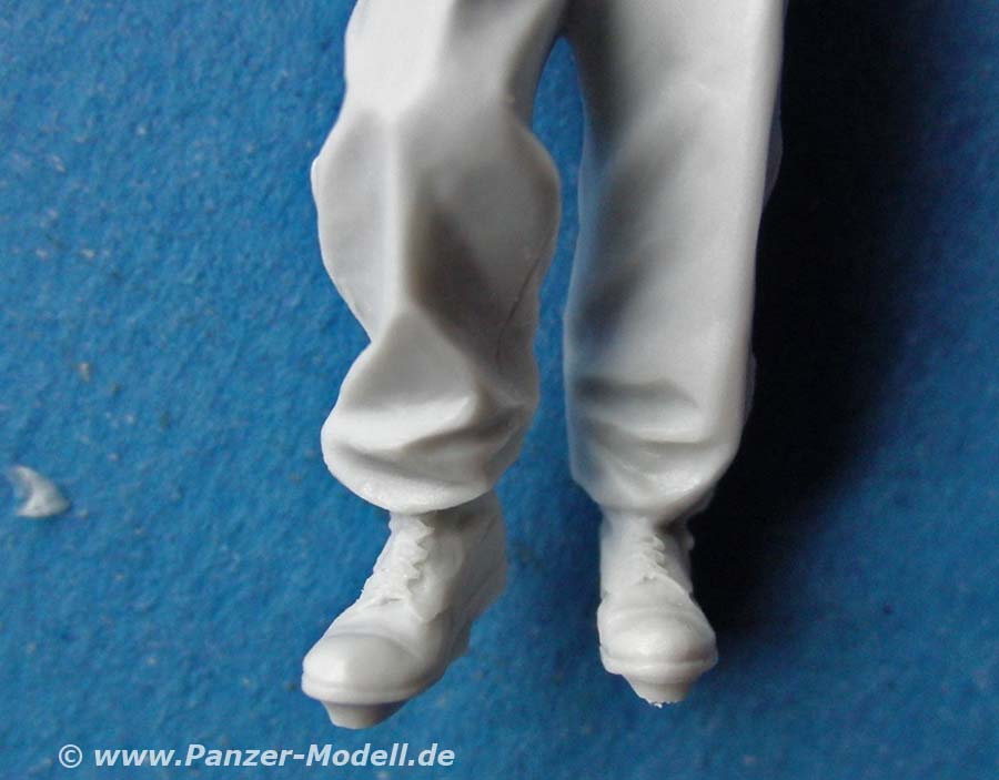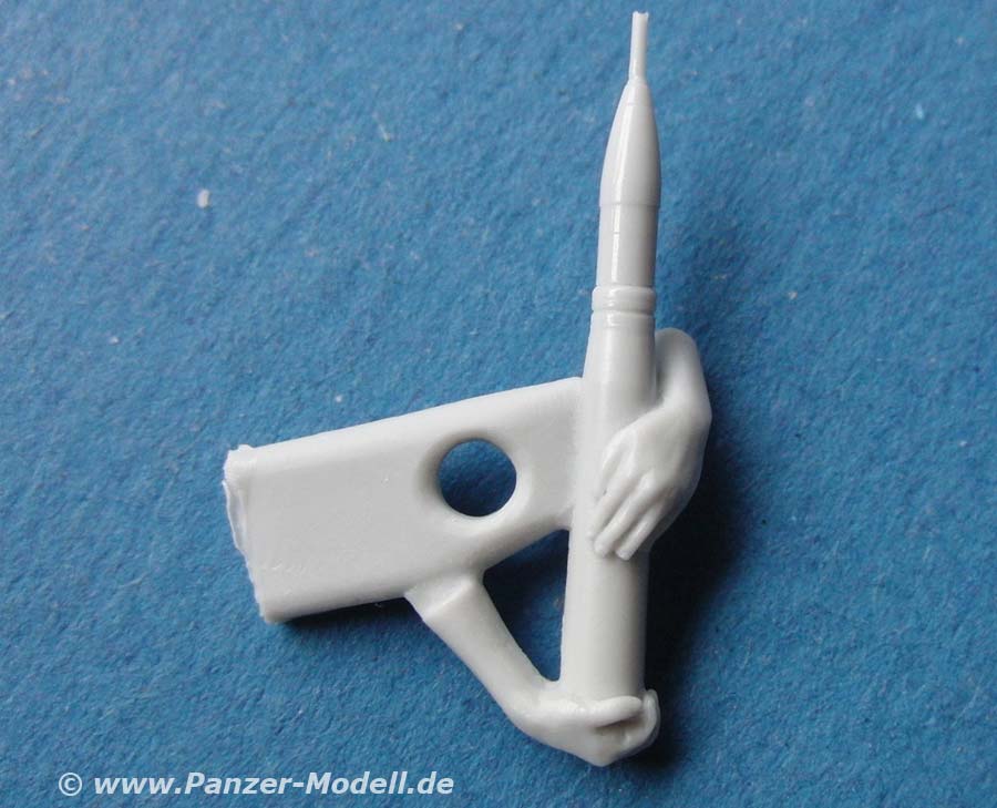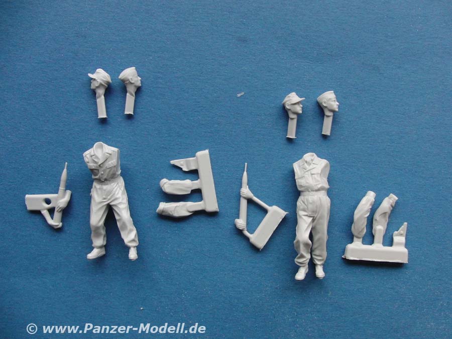 Die Figuren sind quasi komplett gegossen Bei beiden müssen nur wenige Teile wie Arme, Kopf und Holster angeklebt werden, wobei bei beiden die panzergranaten mit den Händen zusammengegossen sind. So muss man beim Anbau der Arme genau den Winkel beider Arme anpassen, damit diese dann auch genau mit den Händen abschließen.