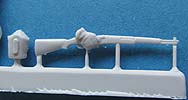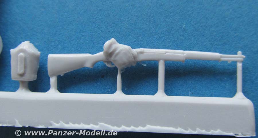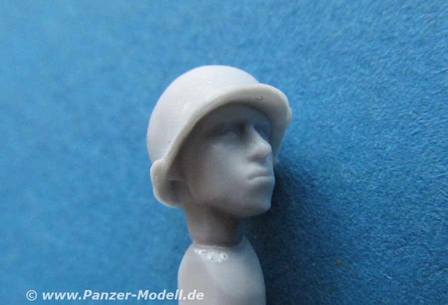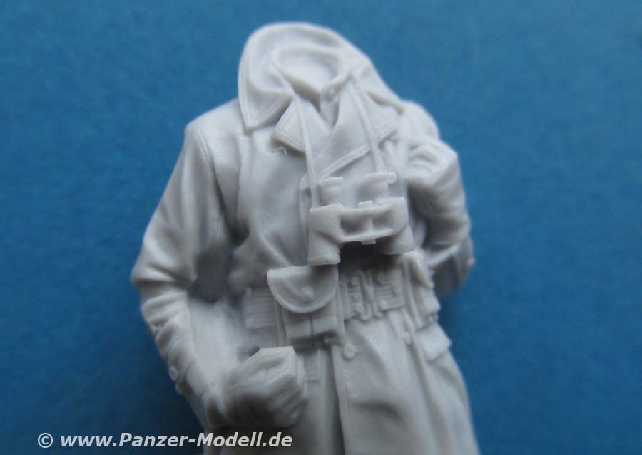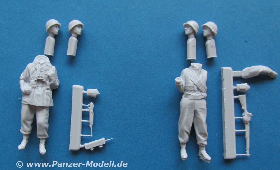 Beide Figuren sind ebenfalls einzeln unter den Nummern 35202 und 35203 erhältlich. Die Figuren setzen sich jeweils aus mehreren Teilen zusammen. Grundsätzlich ist der Körper in einem Stück gegossen an den jeweils die Arme und der Kopf angeklebt werden müssen. Wie von Alpine gewohnt, liegen für jede Figur zwei Köpfe zur Auswahl bei. In diesem Fall haben jeweils beide Köpfe einen Helm, einmal mit und einmal ohne Tarnnetz, welches im übrigen recht schön dargestellt ist. Auch der Rest der Figuren weist eine unheimlich schöne Gussqualität auf - der Faltenwurf der Kleidung ist sehr gut und realistisch. Dazu sind einige sehr exzellente Details bereits mit angegossen, sodass man diese nicht einzeln ankleben muss. Und diese Detail wie verschiedene Taschen, Magazine oder auch das umgehängte Fernglas sind ein wahrer Augenschmaus. Ein nettes Set zur Bereicherung von Vignetten und Dioramen. Für rund 30 Euro bekommt man hier ein schönes und qualitativ hochwertiges Set.
