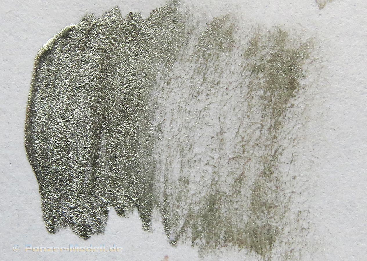 Diese Farbe eignet sich in der Hauptsache fürs Trockenmalen an metallischen Oberflächen, gerade da wo Flächen durch Reibung blankpoliert sind. Ggf. eignet sich diese Farbe auch um an Modellen in blanker Metalllackierung (Flugzeuge o.ä.).