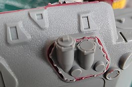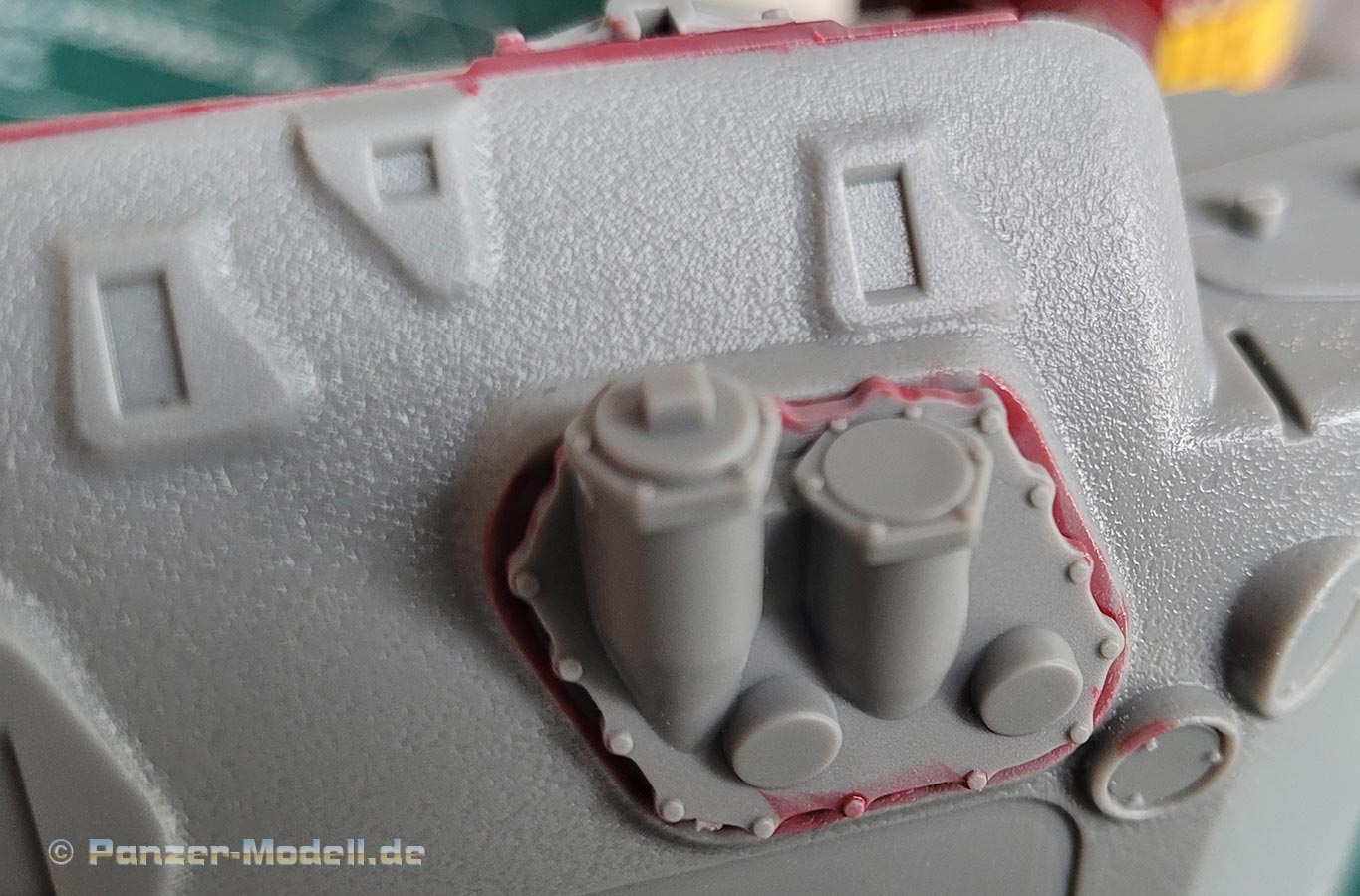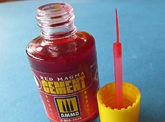 Mit diesem roten Kleber kann man dafür genau sehen, wo jeder Tropfen auf das Modell gekommen ist. Man kann also gerade bei langen Klebenähten sichergehen, dass sie von vorn bis hinten mit Kleber versehen ist.