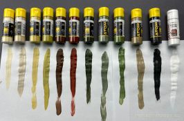 Damit wird eigentlich (fast) das ganze Spektrum an deutschen Farben angedeckt. Die Farben kommen in einer Papp Umverpackung daher und sind 2 Pappschachteln á 6 Flaschen unterteilt
