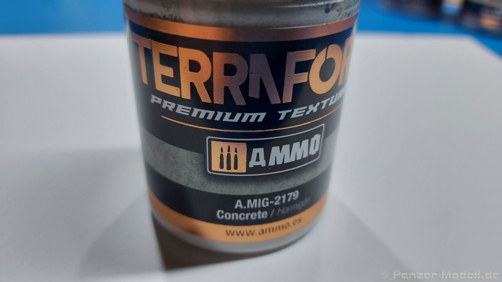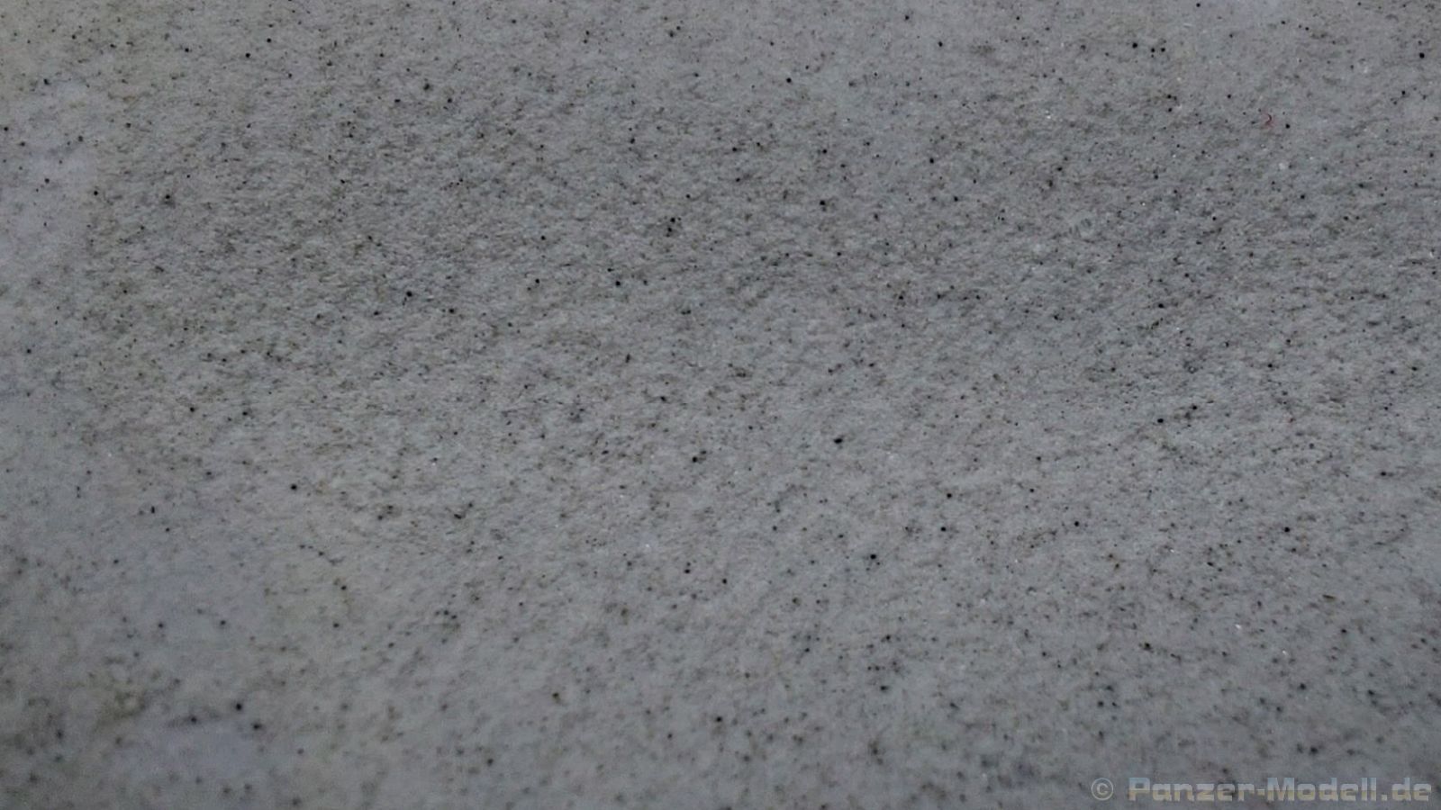 TERRAFORM Concrete Unter Terraforming versteht man normalerweise die Umformung fremder Planeten in erdähnliche, bewohnbare Welten. AMMO by Mig nimmt dies für einige seiner Produkte auf, um kahle Dioramen zu wirklichkeitsnahen Nachbildungen umzuformen. Zurzeit gibt es 10 Produkte in dieser Kategorie, die einzeln oder in Kombination verwendet werden können. Vor mir habe ich in einem 100ml Kunststoffbehälter mit Schraubdeckel Beton (Concrete). Damit hat man nicht nur die Farbe von Beton, sondern auch gleich die passende Struktur und kann Bunkern, Kaimauern, Rampen usw. ein natürliches Aussehen geben. In Kombination mit dünnem Beton (Thin Concrete) kann man z.B. die Struktur einer Betonverschalung herausarbeiten. Vor der Nutzung mischt man das Material mit einem Rührstab (oder auch Schaschlikspieß, Zahnstocher o.ä.) gut durch. Sollte es etwas eingetrocknet sein, kann man es mit Wasser verdünnen, da es sich um ein Acrylprodukt handelt, das zudem ungiftig und geruchlos ist. Man kann es direkt aus dem Behälter verarbeiten und mit einem Pinsel auf die zu bearbeitende Oberfläche auftragen. Die Textur ist so ausgelegt, dass sie für Maßstäbe 1:16 bis 1:48 glaubhafte Oberflächen liefert. Nach ca. 24 Stunden ist das Material durchgetrocknet und kann dann noch nachbearbeitet werden, z.B. Überschleifen mit feinem Schleifpapier, falls einem die Struktur zur rau ist. AMMO by Mig stellt dem Modellbauer Tipps in Englisch und Spanisch zur Verarbeitung und beispielhaften Nutzung auf seiner Webseite zur Verfügung, die eine sehr gute Hilfe darstellen.