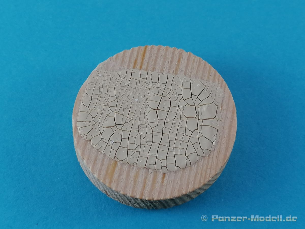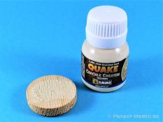 Scorched Sand (Verbrannter Sand) Unter dem Begriff Quake Crackle Creator hat A.MIG eine Reihe von Produkten auf den Markt gebracht die vor allem für Dioramenbauer von Interesse sein dürften. Mit dieser Acrylpaste lassen sich sehr realistische Darstellungen von, durch Hitze oder Trockenheit aufgeplatzten Oberflächen darstellen. Die pastöse Masse kommt in kleinen Behältnissen daher und beinhaltet 40ml. Hier haben wir es mit der Darstellung von verbranntem Sand zu tun. Die Anwendung ist relativ einfach: Die Masse wird mit einem Palettmesser direkt auf den vorbereiteten Untergrund (leicht aufgerauht wegen der Haftung) in einer dünnen Schicht aufgebracht. Nach einer Trocknungszeit von 24 Stunden zeigen sich die endgültigen aufgebrochenen Strukturen. Je nach Stärke der Schicht können die Effekte durchaus auch variieren. Damit haben wir ein durchaus sinnvolles Produkt das preislich (s.u.) noch im moderaten Bereich liegt.