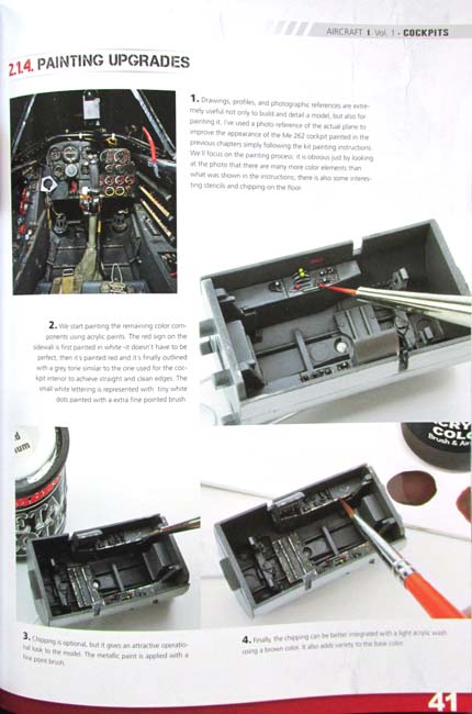 Insgesamt lernt man in diesem Buch etwas über das Lackieren, Montage, Ledersitze, Metallsitze, Schleudersitze, Piloten, Gurte, Hyperdetaillierung, Resin Cockpits, fotogeätzte Komponenten, Scratchbauten, Bemalung von Instrumenten, Abziehbilder, Farbtöne, Polieren und das richtige Verkleben der Cockpits.