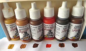 Diese Farben wurden speziell für Figurenmodellbauer entwickelt und sind von Pigmentdichte und Konsistenz auf die Verwendung mit Pinseln spezialisiert, können aber auch mit der Airbrush verarbeitet werden, wenn sie entsprechend verdünnt werden.