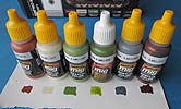 Sie sind sowohl mit dem Pinsel als auch mit der Airbrush zu verarbeiten. Je nach Airbrush Typ können diese unverdünnt oder nachverdünnt verwendet werden. Die Qualität der Farben ist ganz ausgezeichnet mit sehr feiner Pigmentierung und einem schwach seidenmatten Ton mit Scaleeffekt, der extrem realistisch in diesem Maßstab wirkt. Enthalten sind folgende Farben: