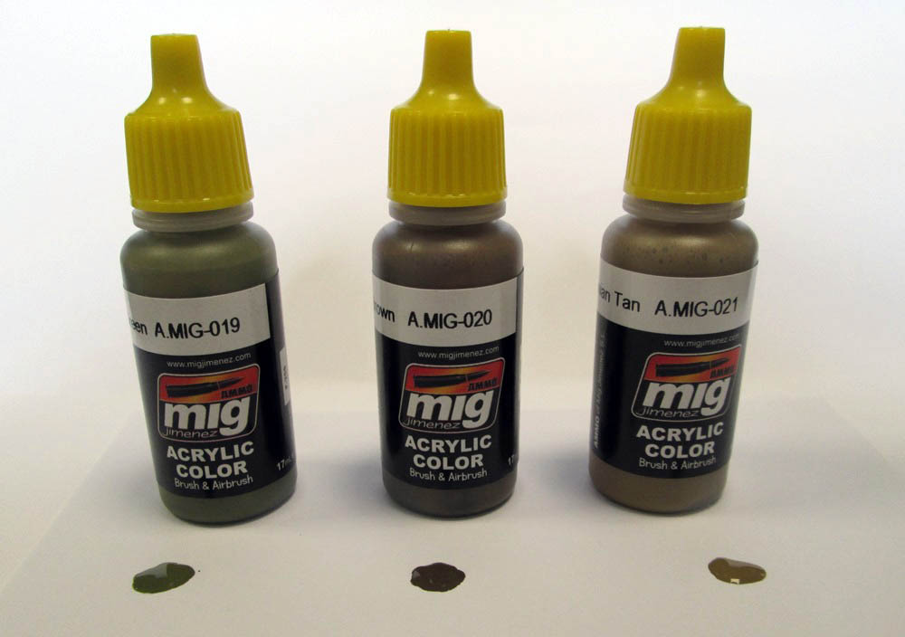 Mit der Artikelnummer A.MIG 7136 ist von Ammo of Mig ein Farbset für die Bemalung von sowjetischen Gefechtsfahrzeugen aus der Zeit des WK II erhältlich. Das Set ist eine abgespeckte Version des hier bereits vorgestellten Farbsets A.MIG 7107. Es wird als Smart Set angeboten und beinhaltet 3 kleine Flaschen mit je 17ml Inhalt. Die Acrylfarben auf Wasserbasis sind geruchsneutral und angeblich sogar ungiftig. Folgende Farben sind in dem Set enthalten: A.MIG-019 4BO RUSSIAN GREEN Ist es jemandem aufgefallen dass die Verschlusskappen der Flaschen jetzt gelb anstatt dem üblichen orange ausgeführt sind? Daran lässt sich erkennen dass in diesen Flaschen eine rostfreie Metallkugel enthalten ist. Schüttelt man die Flasche jetzt wie gewohnt so hört man plötzlich das deutliche Klack Klack… Die Mischkugel erleichtert das erste Anmischen innerhalb der Flasche ganz erheblich. Das Farbset kostet 6,90 EUR und kann direkt bei Ammo of Mig oder auch im örtlichen Modellbauhandel bezogen werden. Special thanks to Mig Jimenez for the sample.