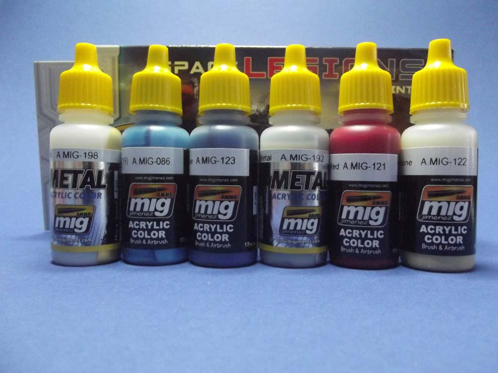 Mit der Artikelnummer A.MIG 7153 ist von Ammo of Mig ein Farbset für die Bemalung von Kampfrobotern oder futuristischen Kampfmaschinen / Gefechtsfahrzeugen erhältlich. Die Farben lassen sich aber natürlich auch anderweitig verwenden. Grenzen setzt hier nur die Phantasie des Modellbauers. Das Farbset beinhaltet 6 kleine Flaschen mit je 17ml Inhalt. Die Acrylfarben auf Wasserbasis sind geruchsneutral und angeblich sogar ungiftig. Wenn sie auch nicht giftig sein mögen, gesund sind sie ganz bestimmt nicht. Folgende Farben sind in dem Set enthalten: A.MIG-086 Blue Auch bei diesem Set sind die Verschlusskappen der Flaschen gelb anstatt dem üblichen orange. Daran lässt sich erkennen dass in diesen Flaschen eine rostfreie Metallkugel enthalten ist. Schüttelt man die Flasche jetzt wie gewohnt so hört man plötzlich das deutliche Klack Klack Klack… Die Mischkugel erleichtert das erste Anmischen innerhalb der Flasche ganz erheblich. Das Farbset kostet 13,80 EUR und kann direkt bei Ammo of Mig oder auch im örtlichen Modellbauhandel bezogen werden. Special thanks to Mig Jimenez for the sample.