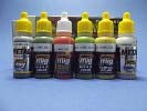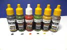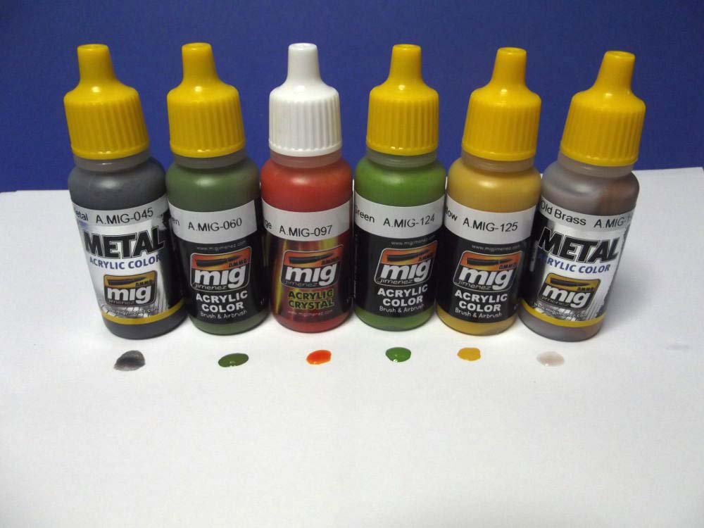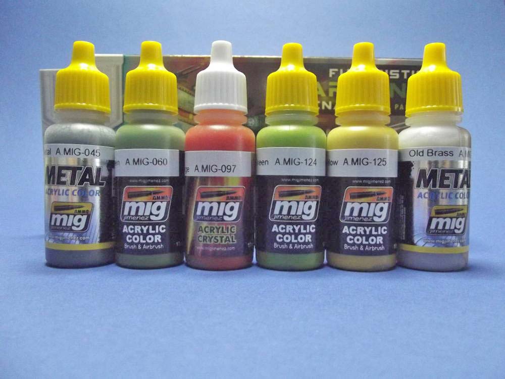 Mit der Artikelnummer A.MIG 7154 ist von Ammo of Mig ein Farbset für die Bemalung von futuristischen Kampfzonen erhältlich. Die Farben sind besonders für die Bemalung von Festungen, Geschützstellungen, Bunkern oder Gebäuden vorgesehen, lassen sich aber natürlich auch anderweitig verwenden. Grenzen setzt hier nur die Phantasie des Modellbauers. Das Farbset beinhaltet 6 kleine Flaschen mit je 17ml Inhalt. Die Acrylfarben auf Wasserbasis sind geruchsneutral und angeblich sogar ungiftig. Wenn sie auch nicht giftig sein mögen, gesund sind sie ganz bestimmt nicht. Folgende Farben sind in dem Set enthalten: A.MIG-045 Gun Metal Auch bei diesem Set sind die Verschlusskappen der Flaschen gelb anstatt dem üblichen orange. Daran lässt sich erkennen dass in diesen Flaschen eine rostfreie Metallkugel enthalten ist. Schüttelt man die Flasche jetzt wie gewohnt so hört man plötzlich das deutliche Klack Klack Klack… Die Mischkugel erleichtert das erste Anmischen innerhalb der Flasche ganz erheblich. Auch bei der Farbe A.MIG-097, die Flasche mit dem weißen Deckel, ist eine Mischkugel enthalten. Das Farbset kostet 13,80 EUR und kann direkt bei Ammo of Mig oder auch im örtlichen Modellbauhandel bezogen werden. Special thanks to Mig Jimenez for the sample.