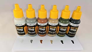 Das Set beinhaltet sechs 17ml Tropffläschchen mit folgenden Farben. AMIG0046 Black Große Vorteil dieser Farbsets sind die aufeinander abgestimmten Farben, die man so für die Bemalung der Modelle direkt aus „einer Hand“ bekommt. Kein lästiges Suchen innerhalb eines Farbsortimentes des Herstellers, kein Selbstanmischen der benötigten Farbtöne… In den Flaschen ist jeweils eine kleine Kugel aus rostfreiem Edelstahl enthalten. Durch Schütteln der Flasche wird das Mischen der Farbe erheblich erleichtert. Die Deckkraft beim Streichen per Pinsel ist sehr gut. Die Farbe trocknet schnell, relativ glatt und mit einem leichten seidigen Glanz. Gleiches gilt bei der Verwendung einer Airbrush, hier sollte die Farbe aber entsprechend verdünnt werden.Special thanks to Mig Jimenez for the sample.
